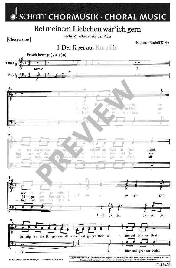 Bei meinem Liebchen wär' ich gern (6 Volkslieder aus der Pfalz) - Muestra de música