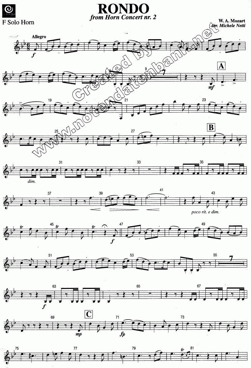 Rondo from Horn Concert #2 - hacer clic aquí Rondo from Horn Concert #2 (banda de música; Trompa), partitura y piezas