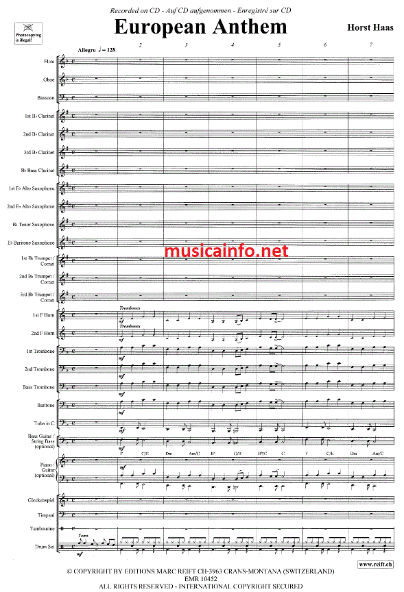 European Anthem - hacer clic aquí European Anthem (banda de música; o; fanfarria ), partitura y piezas