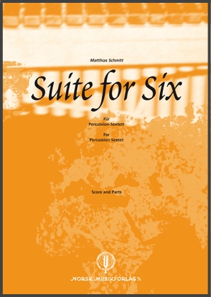 Percussion Sextet. For 6 mallet instruments: 1 Vibraphones and 5 Marimbas and other percussion instruments: Player 1: vibraphone Player 2: Marimba Player 3: Marimba, 3 timpani, tom tom and clapping. Player 4: marimba, gran cassa, ride becken (cymbal), shaker, tom tom and clapping. Player 5: Marimba, sizzle becken (cymbal), bongos, bass and snare drum, hi hat, tom tom and clapping. Player 6: Marimba, crash becken (cymbal), 5 temple blocks, bongos and clapping. Score and parts. |