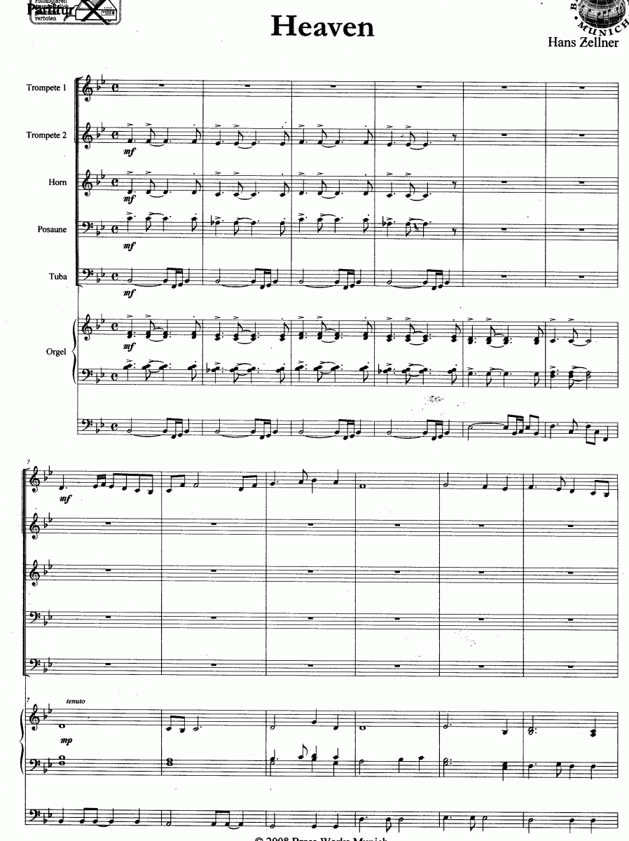 Instrumentación/Información 2Trp (2 trompetas en Si bemo); Hrn (Trompa); Trb (trombón); Tub (tuba); Org (órgano)