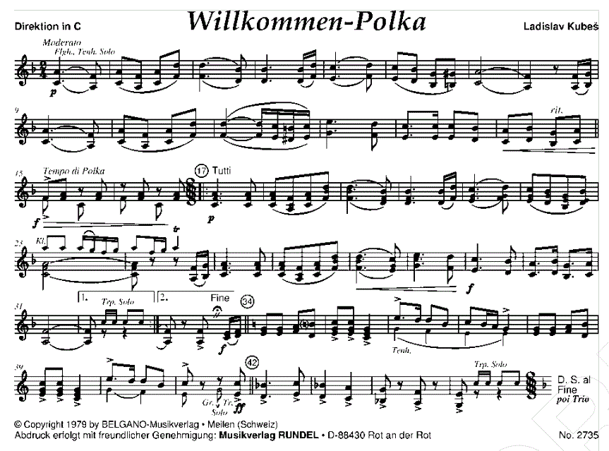 Willkommen-Polka (Na privítanou) - hacer clic aquí Willkommen-Polka (Na privítanou) (banda de música), Partitura condensada y partes instrumentales