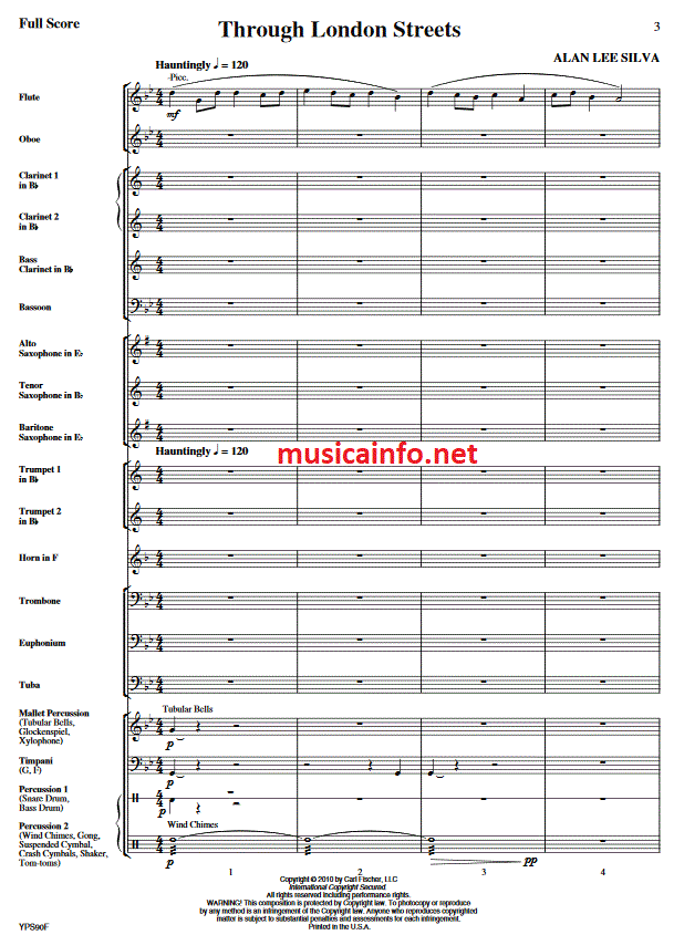 Otros detalles/contenidos Desde las ominosas campanadas de apertura y la inquietante melodía de la flauta hasta las rápidas notas de staccato y los estruendosos acentos de conjunto finales, esta pieza evoca imágenes de misterio y suspenso. Basada en escenas de las historias de Sherlock Holmes, "Through London Streets" sigue al mítico detective en su búsqueda de su enemigo en los callejones neblinosos y los bulevares con niebla. Este es un trabajo serio para banda de un compositor que se está convirtiendo rápidamente en uno de los compositores más populares para los jóvenes.