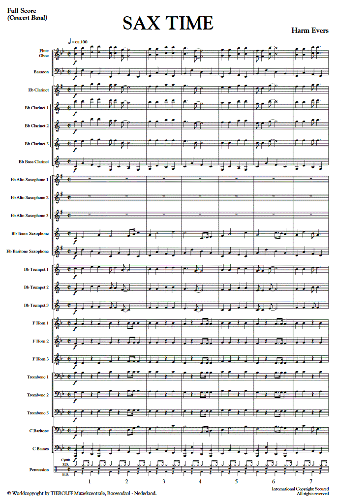 Otros detalles/contenidos Sax Time es una simple pieza de trío de saxofón con acompañamiento de banda, seguro que atraerá a todos los oyentes. Las siguientes partes de saxofón solo están disponibles: