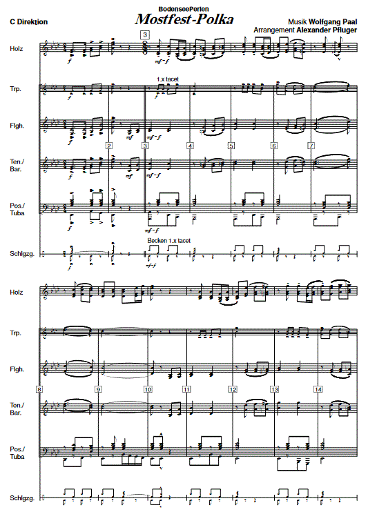 Mostfest-Polka - hacer clic aquí Mostfest-Polka (banda de música), Partitura condensada y partes instrumentales