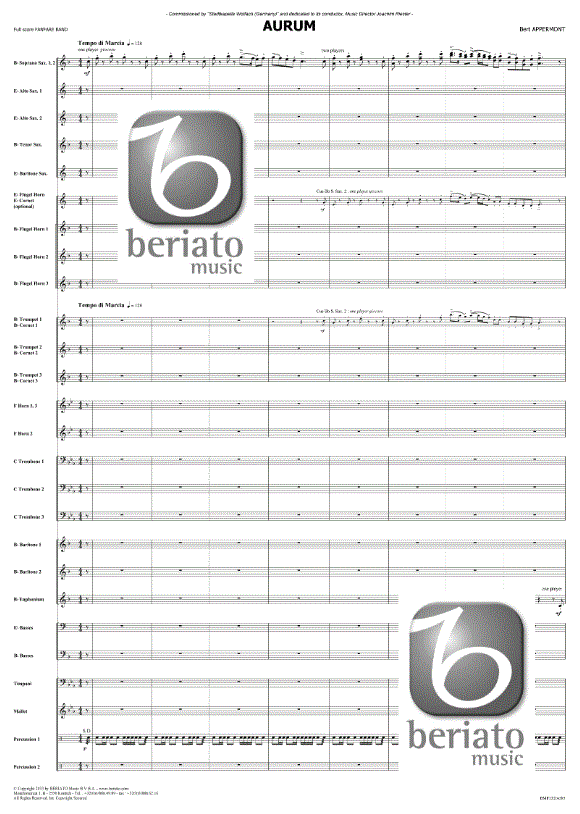Otros detalles/contenidos La magnífica marcha de conciertos Aurum (lat. dorado) fue escrita con motivo del 50 aniversario del director de la banda municipal de Wolfach, en Baden-Württemberg, Alemania.