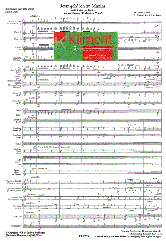 Título Jetzt geh' ich ins Maxim aus der Operette 'Die Lustige Witwe'