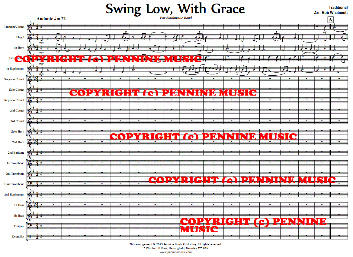 Otros detalles/contenidos This work cleverly combines two well-loved songs, Amazing Grace & Swing Low, Sweet Chariot into a great little piece for bands. With the opening and close performed as a quartet feature, a lone soloist is heard ringing out the Swing Low melody before the tempo picks up from the band. A swing section then gets your audiences feet tapping before returning to the quartet for the finale. A great little piece that would work very well in any concert programme.